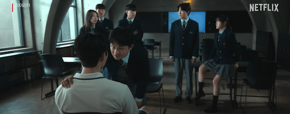 교내 생활 첫날부터 강하는 철저한 차별과 학대가 존재하는 계급사회와 유사한 학교내의 질서를 직접 목격하게 됩니다. 학교에 막대한 영향력을 미치는 부모들의 자녀들은 학생들 사이에서도 최상위 포식자로 군림해 그에 맞는 권력과 특권을 누리고 있었고 이에 반해 학교의 장학금으로 선별된 학생들은 최하위층으로 사람 이하의 가축 취급을 받으며 생활해야만 했습니다. 또 학교의 선생님들은 이를 묵과하고 오히려 최상위층 학생들의 눈치를 보며 오히려 그들을 떠받드는 하인 시늉을 자처했기 때문에 부모들의 권력을 이어받은 자녀들은 학교에서 마치 왕처럼 군림하게 됩니다.